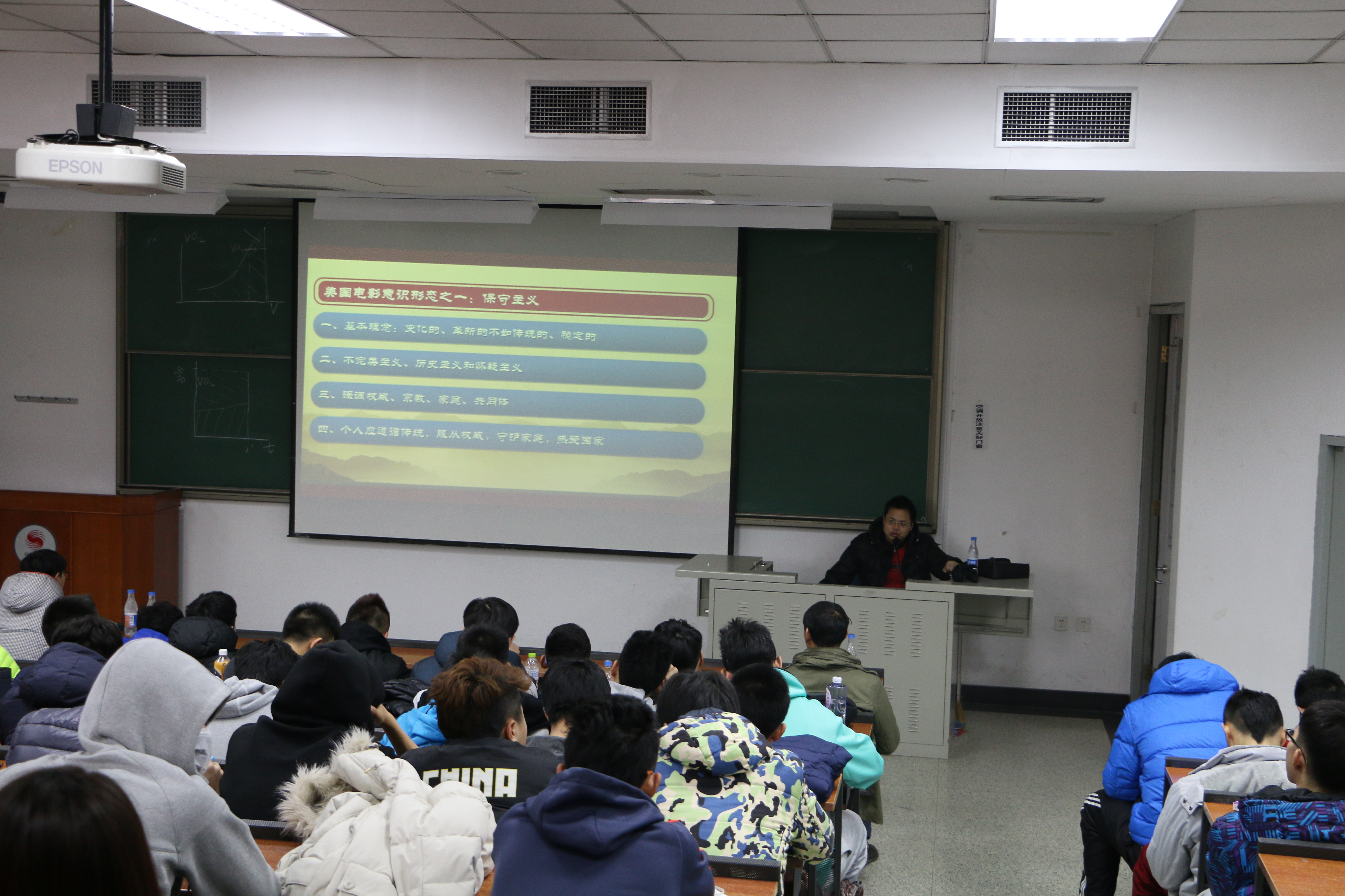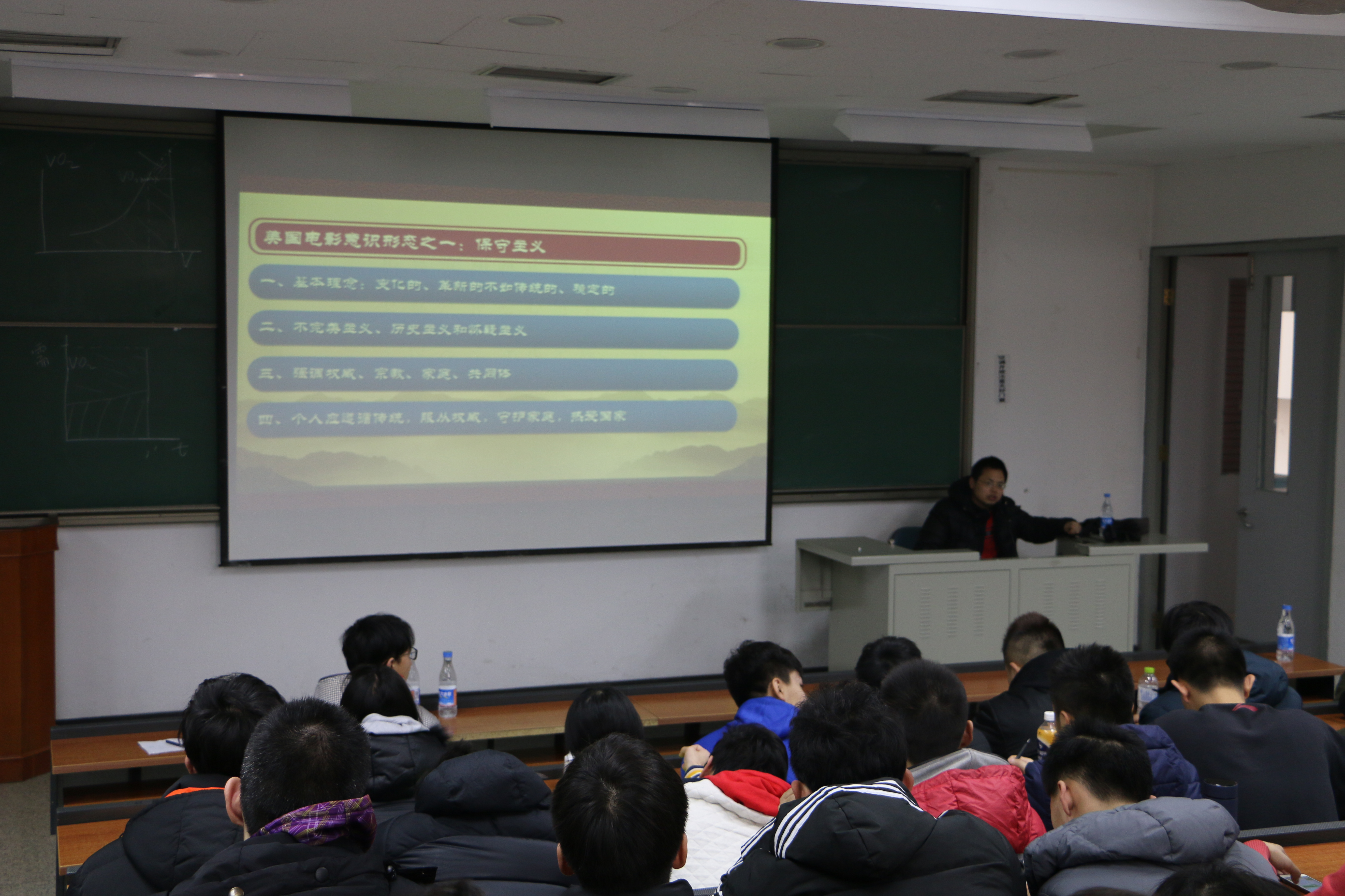 2015年12月9日上午10点整,beat365手机版官网特别邀请到来自清华大学的教授李健老师在教学楼315教室对beat365手机版官网同学们进行“红色文化系列教育”之美国电影如何控制中国学生头脑相关知识讲授。2015级的辅导员鲁骥和陈嘉宝老师也出席了此次活动。