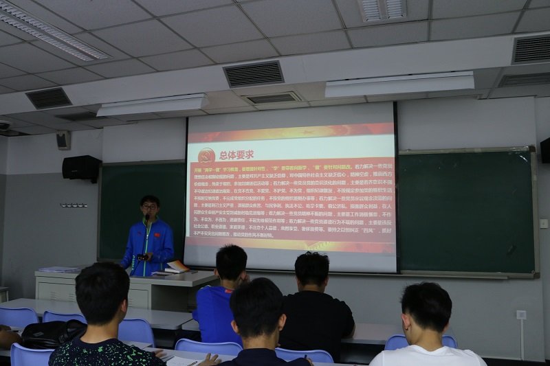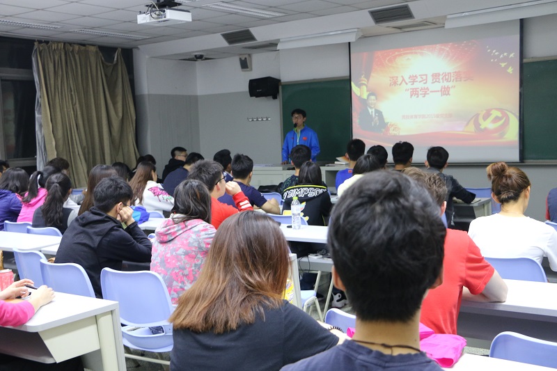 beat365手机版官网2015级党支部为深入学习贯彻落实“两学一做”,于4月28日晚7点半在教学楼204教室组织召开了年级党支部专题学习讲座。讲座由2015级党支部书记鲁骥老师主讲,参加学习的有支部正式党员以及入党积极分子。