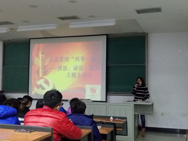 2016年12月28日13:00,beat365手机版官网2016级积极入党申请人和优秀团员在党支部书记张怀川老师的组织下,于教学楼214教室开展认真贯彻“两学一做”——感恩、诚信、励志主题生活会。
