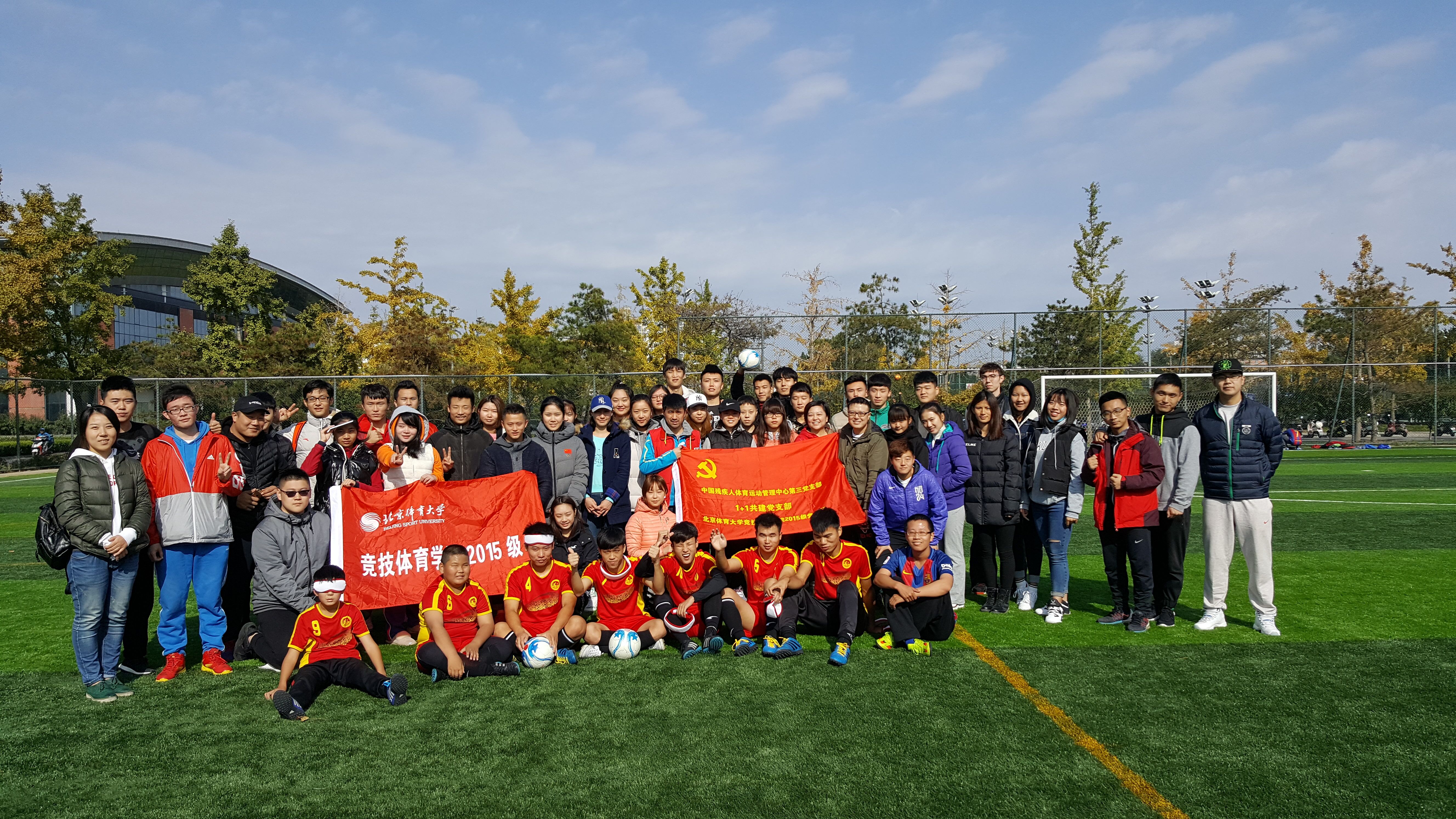 2016年10月26日上午10点30分,由中国残联举办的残障人士系列赛于我校3号足球场拉开序幕,beat365手机版官网2015级召集了50名入党积极分子前去助威,这也是2015级党支部与残疾人管理中心第三党支部合作完成的的又一项“1+1共建党支部”活动。