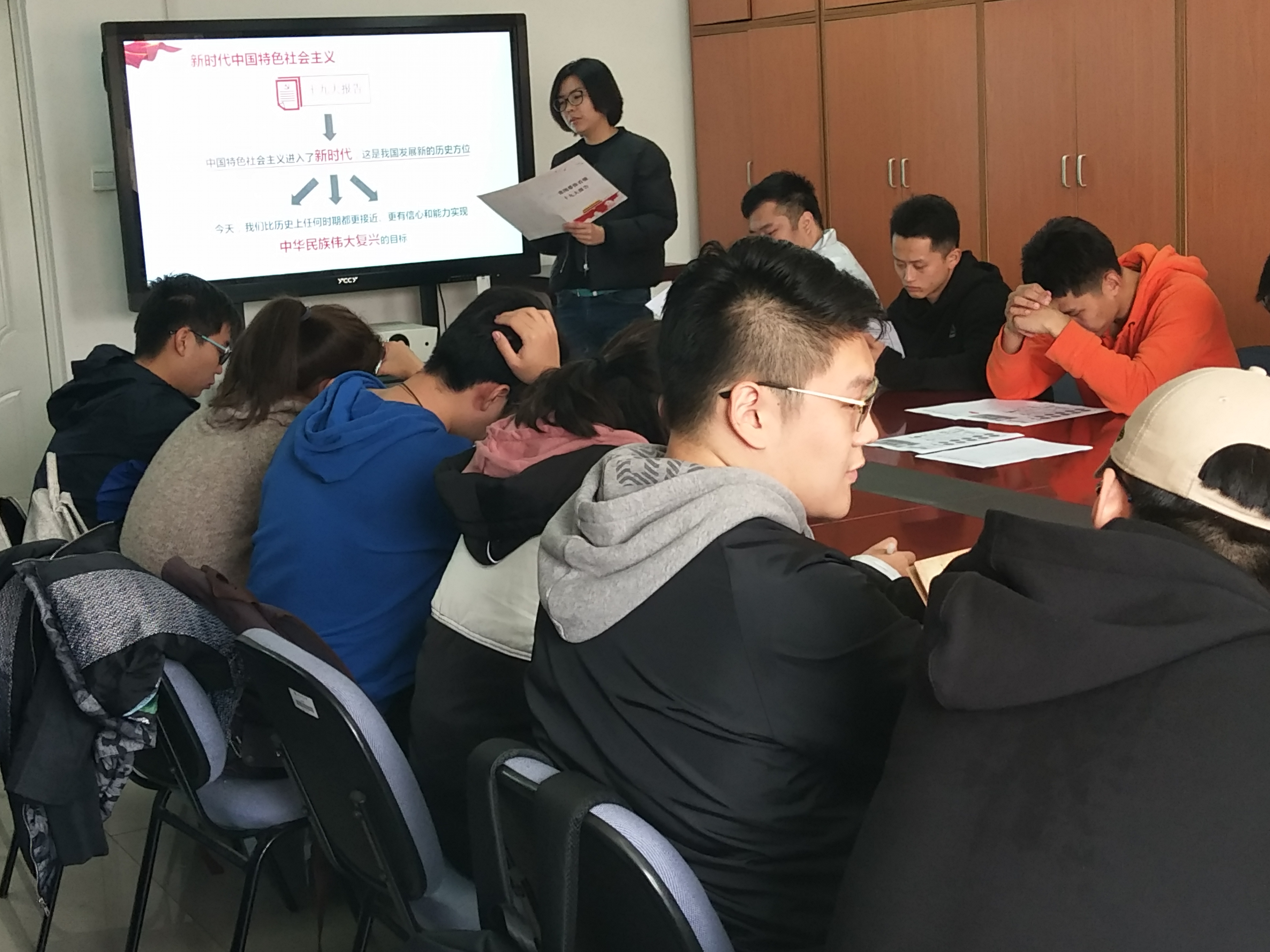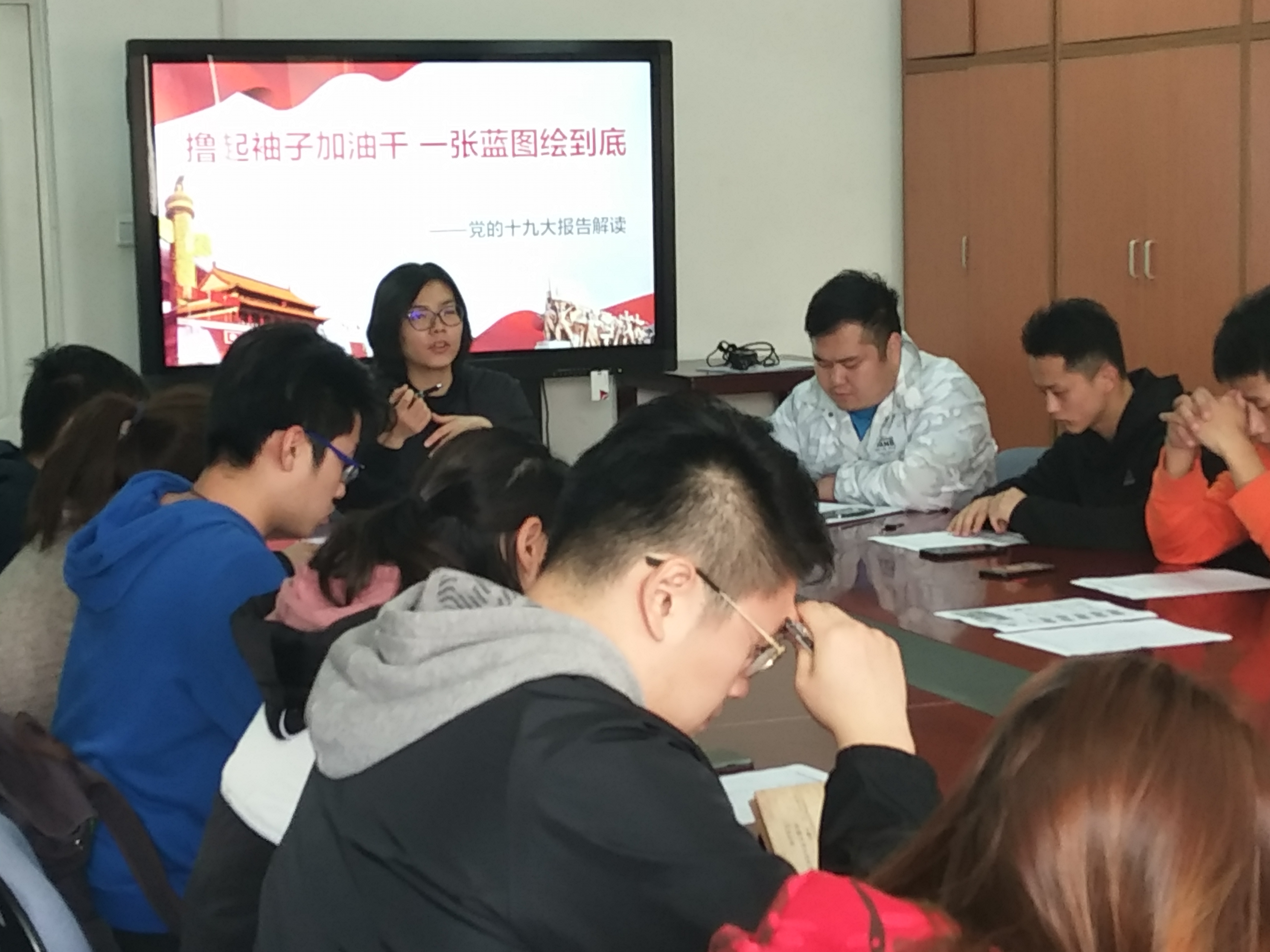 2017年11月9日中午12点,beat365手机版官网团总支书记周凌瑞于教研楼210会议室带领全体学生会干部,开展十九大精神学习。