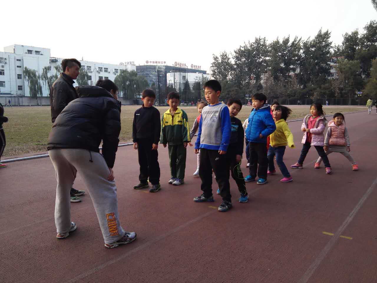 本周二下午16:15,在学校工会的鼎力支持下,beat365手机版官网青少年训练营中针对教职工子女开设的免费田径课程开始了第二节的训练课。田径课程的教练由部分田径教研室的教师以及beat365手机版官网2013级田径专项的学生组成,学员们虽然年龄小,但是在教练的悉心指导下,各项技术动作都完成的有模有样的。本次课程学员的平均年龄在4-8岁左右,虽然学员的年龄不大,但学员对自己的要求非常严格,积极完成教练布置的训练任务。本次训练课在西田径场进行,天气虽然冷,但学员和教练的训练热情依旧很高涨。