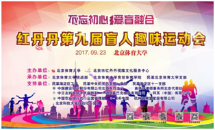 图为红丹丹第九届盲人趣味运动会宣传背景板