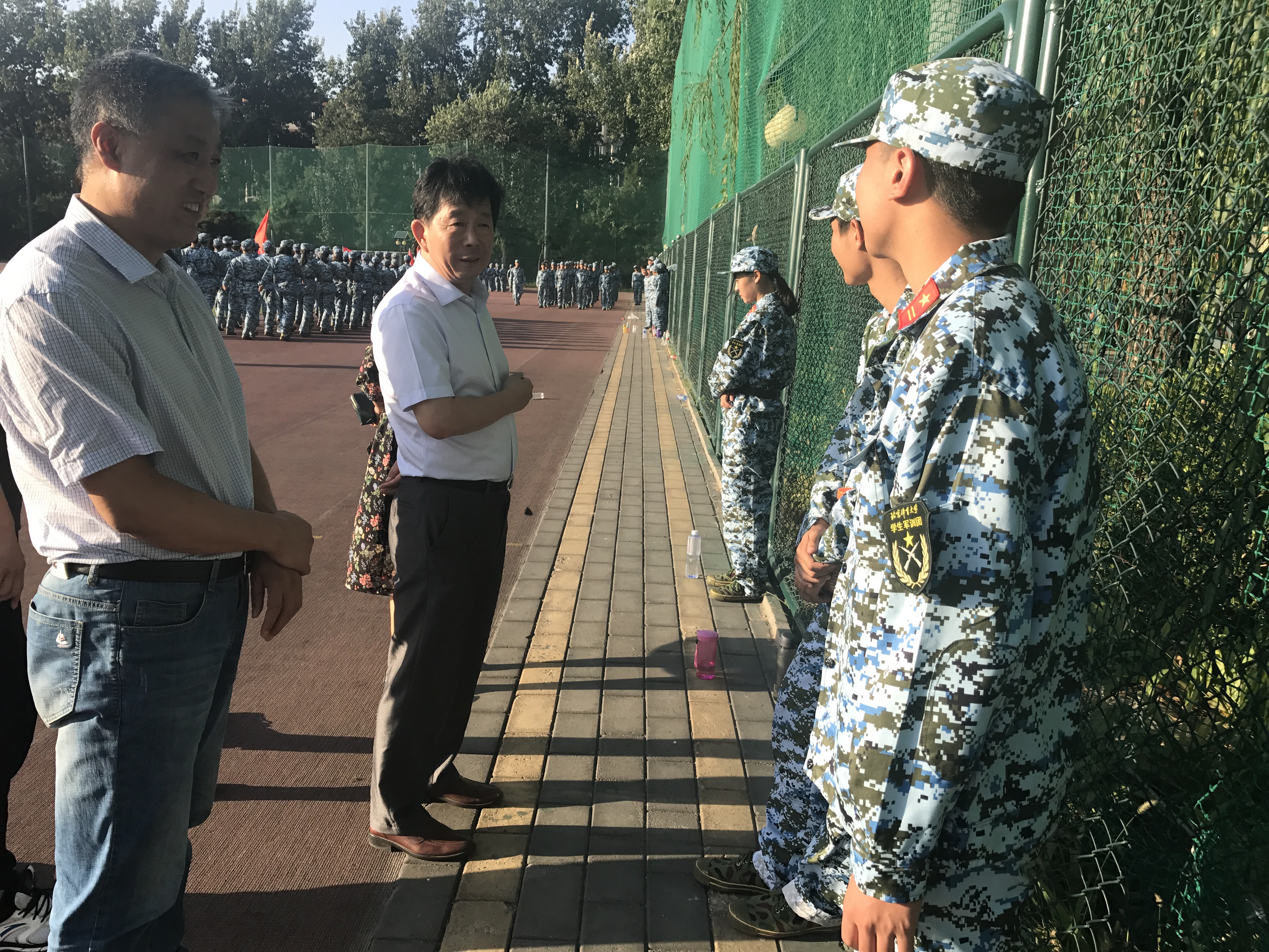 2017年9月18日,beat365手机版官网院长马冰、副院长左琼、张君书记、竞体院院办主任栾乐萌以及2017级辅导员高静怡前往军训现场,检查新生军训情况。