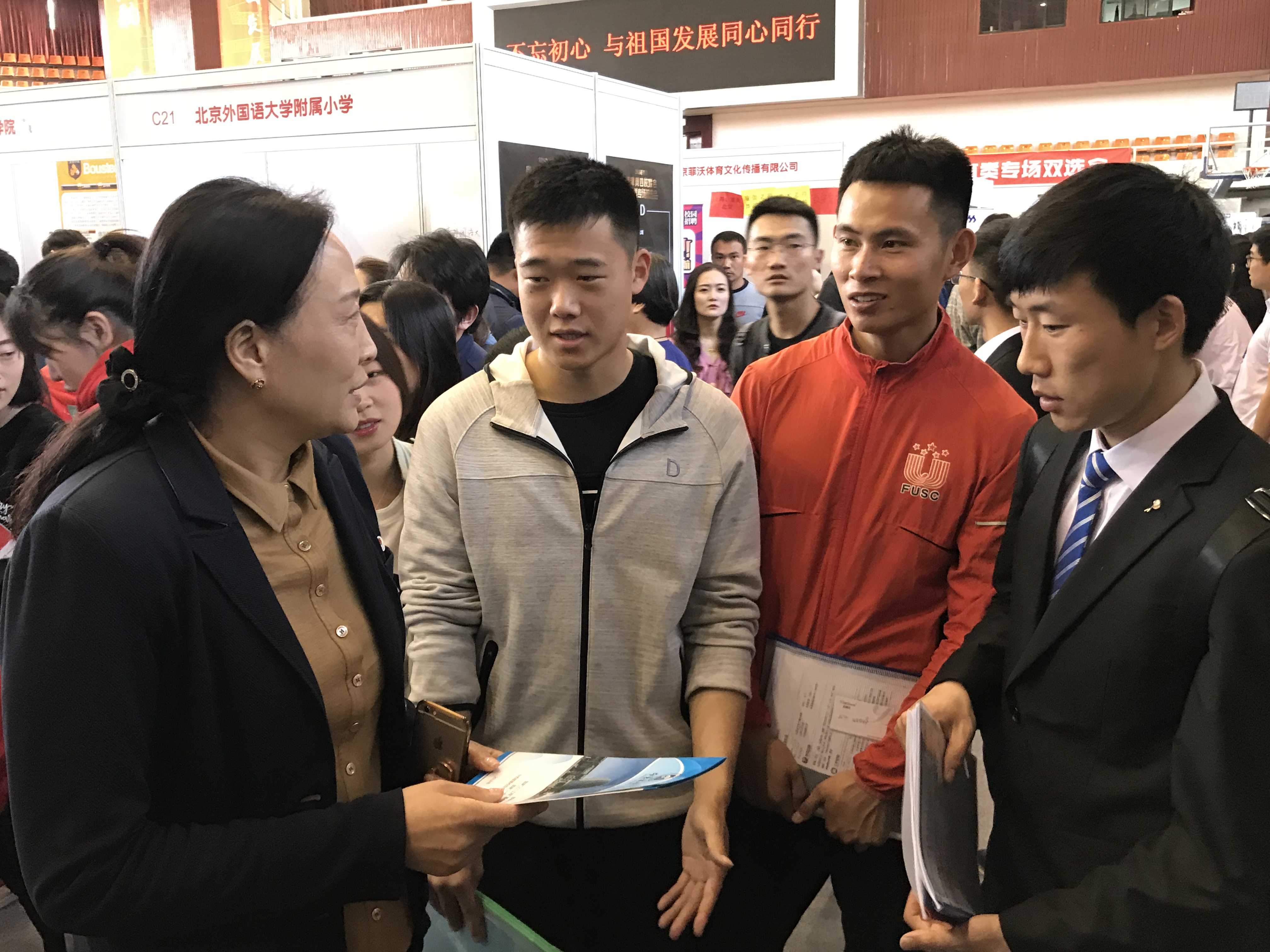 本次双选会由北京高校毕业生就业指导中心主办,beat365手机版官网、首都体育学院、天津体育学院、河北体育学院联合承办,现场有来自全国各地182所学校及企业。我校本硕博毕业生积极参与,抓住机会,投放简历。学院领导在现场了解就业趋势的同时也热情的与来参加双选会的同学互动交流,关心同学们的情况,询问学生目前困惑,同时给学生们做出解答,鼓励同学们积极主动宣传自己。beat365领导在与用人单位的谈话中了解到,单位挑选人才不仅仅要看毕业生的学历层次,更重要的是全面考察毕业生的创新能力、科研能力、服务能力和责任意识。