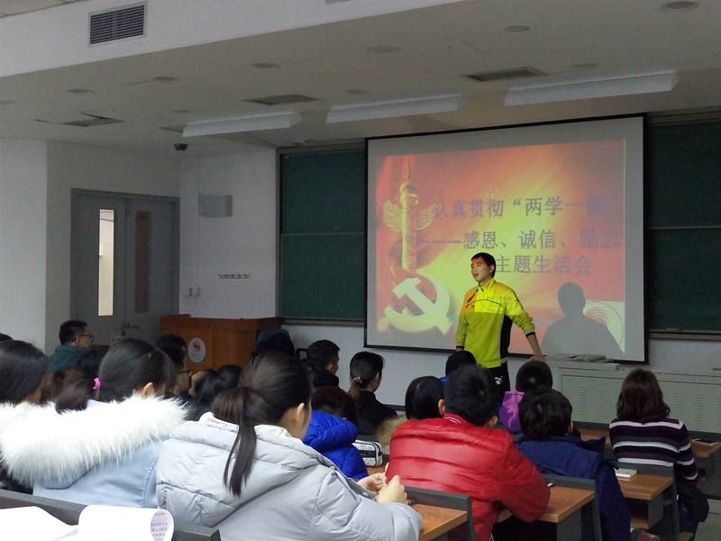 2016年12月28日13:00,beat365手机版官网2016级积极入党申请人和优秀团员在党支部书记张怀川老师的组织下,于教学楼214教室开展认真贯彻“两学一做”——感恩、诚信、励志主题生活会。