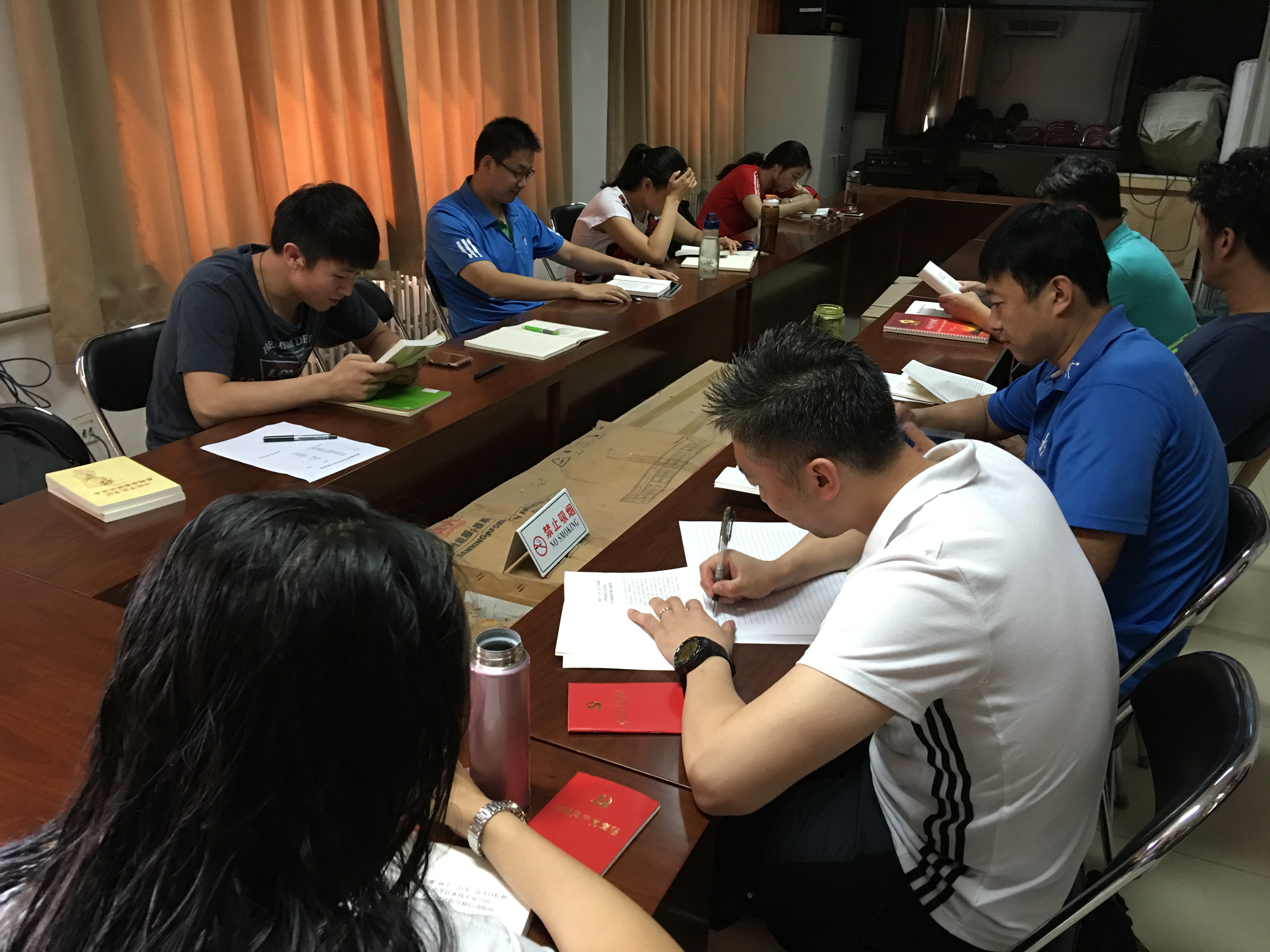 为响应学校党组织两学一做的号召,继续加强教研室党组织建设,不断提高党员们的思想觉悟,2016年6月22日上午十点在游泳教研室会议室,支部书记傅延浩主持此次学习活动。