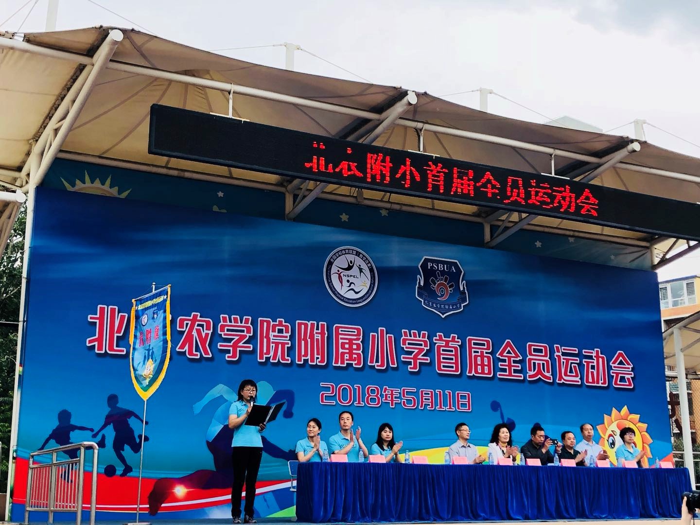 2018年5月11日上午,北京农学院附属小学举行了首届全员运动会。出席本次的运动会的领导和专家有:李国华教授——北京市“一校一品”项目专家,全国学校体育联盟(教学改革)特聘专家、李相阳——北京农学院教务处副处长、尹振栋——回龙观社会事务办主任、聂玉峰——昌平校外教育协会会长、纪士更——昌平校外教育协会秘书长、郑金霞——北京农学院附属小学校长以及北农附小的各位主管领导们。我校beat365手机版官网“高参小”团队在北农附小参与了学校第一届全员运动会的裁判工作。