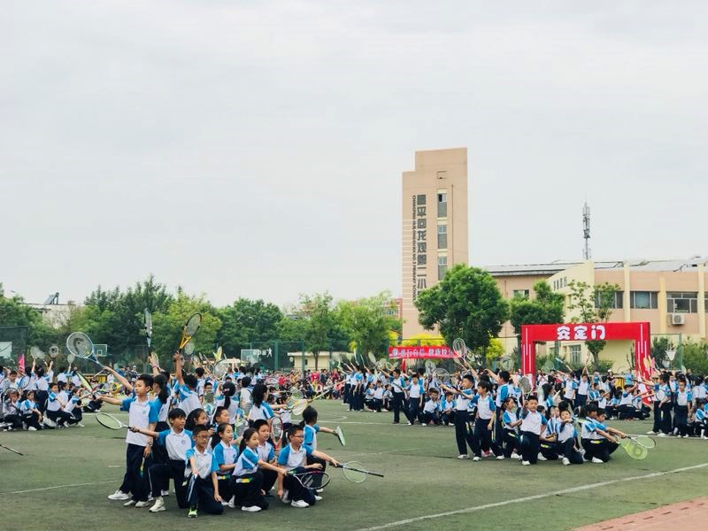 首先上场的是鼎鼎有名的北农附小320人网球操方阵。网球是北农附小的特色项目。学生们动作整齐划一,气势恢宏,震撼人心。