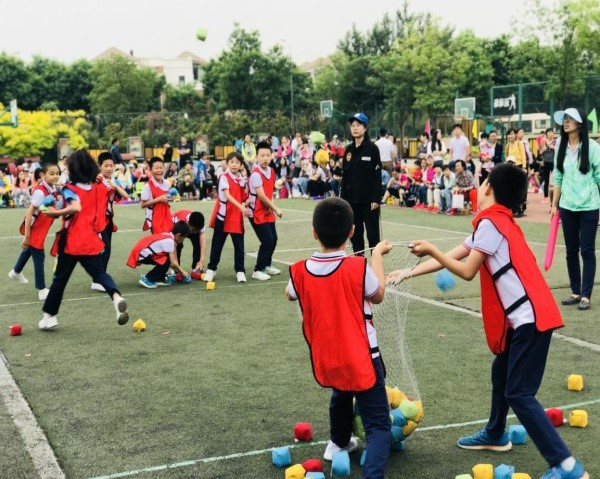 本次运动会集全员性、趣味性、竞技性为一体,以“全员参与”为口号,希望同学们在运动中锻炼意志、树立集体意识、学会合作、提高身体素质。运动会共设12个比赛项目,参赛人员分为红、黄、蓝、绿四个团队。比赛开始前,我们安排了好每一位裁判的工作——每项比赛的检入处、起点处、终点处都可以看到我校“高参小”团队的身影。