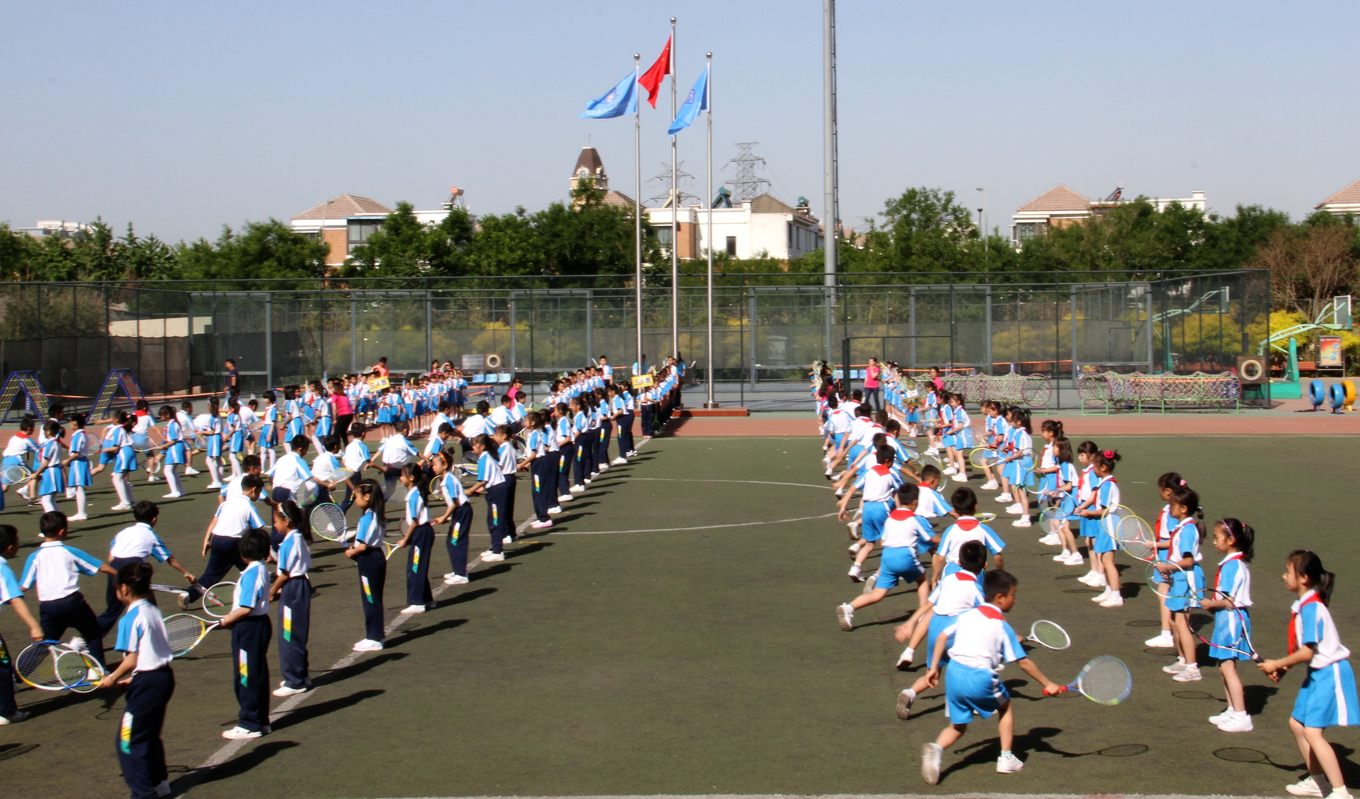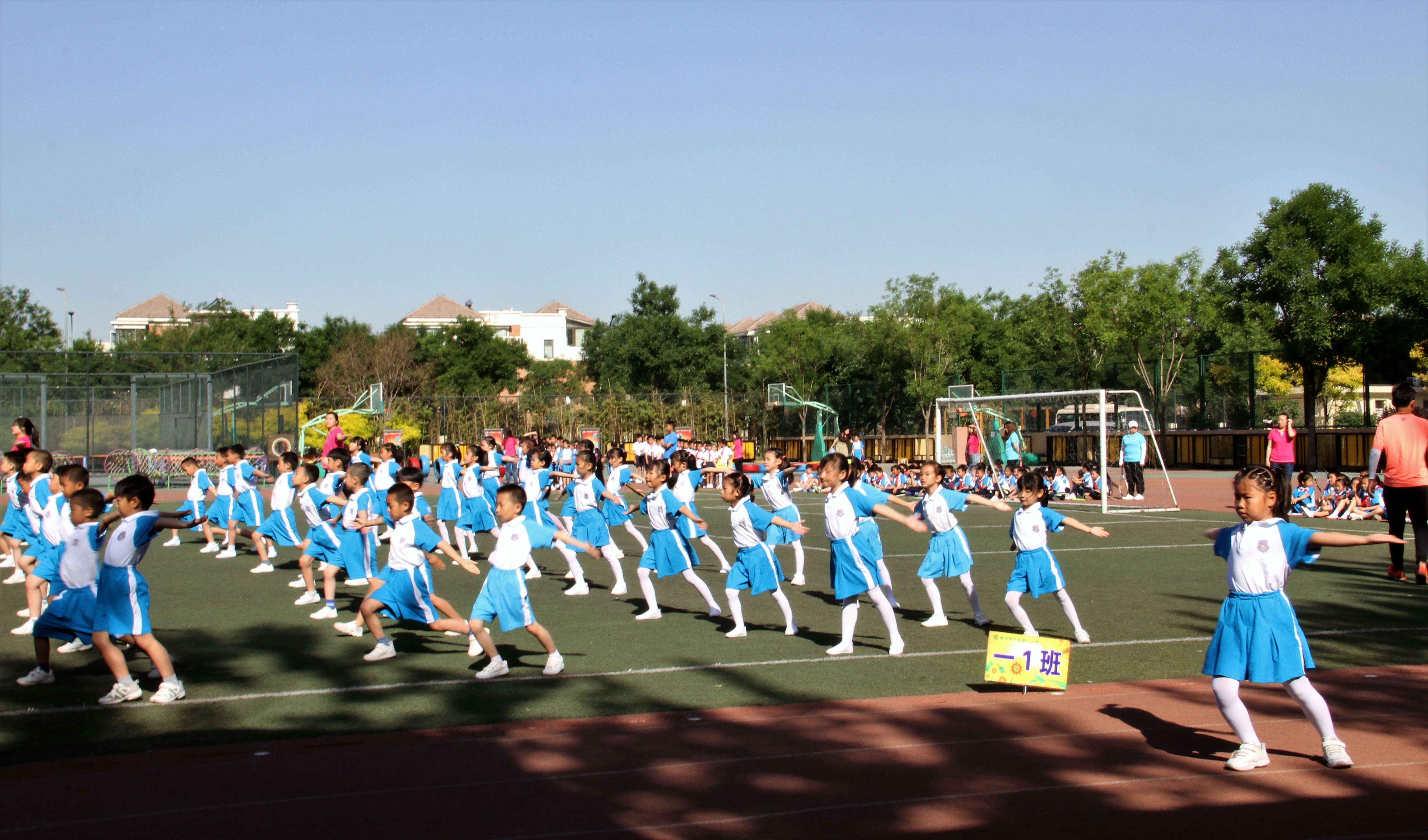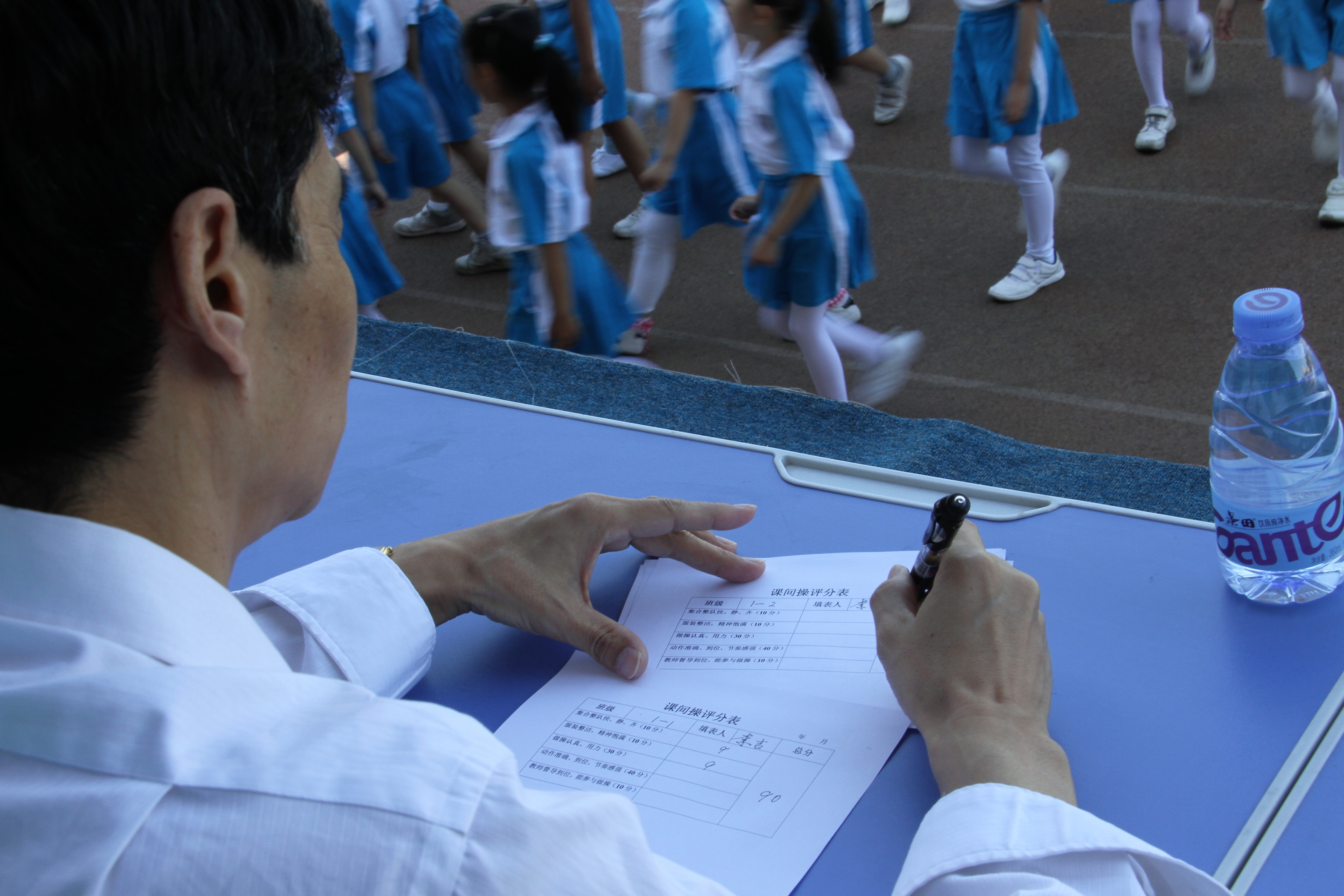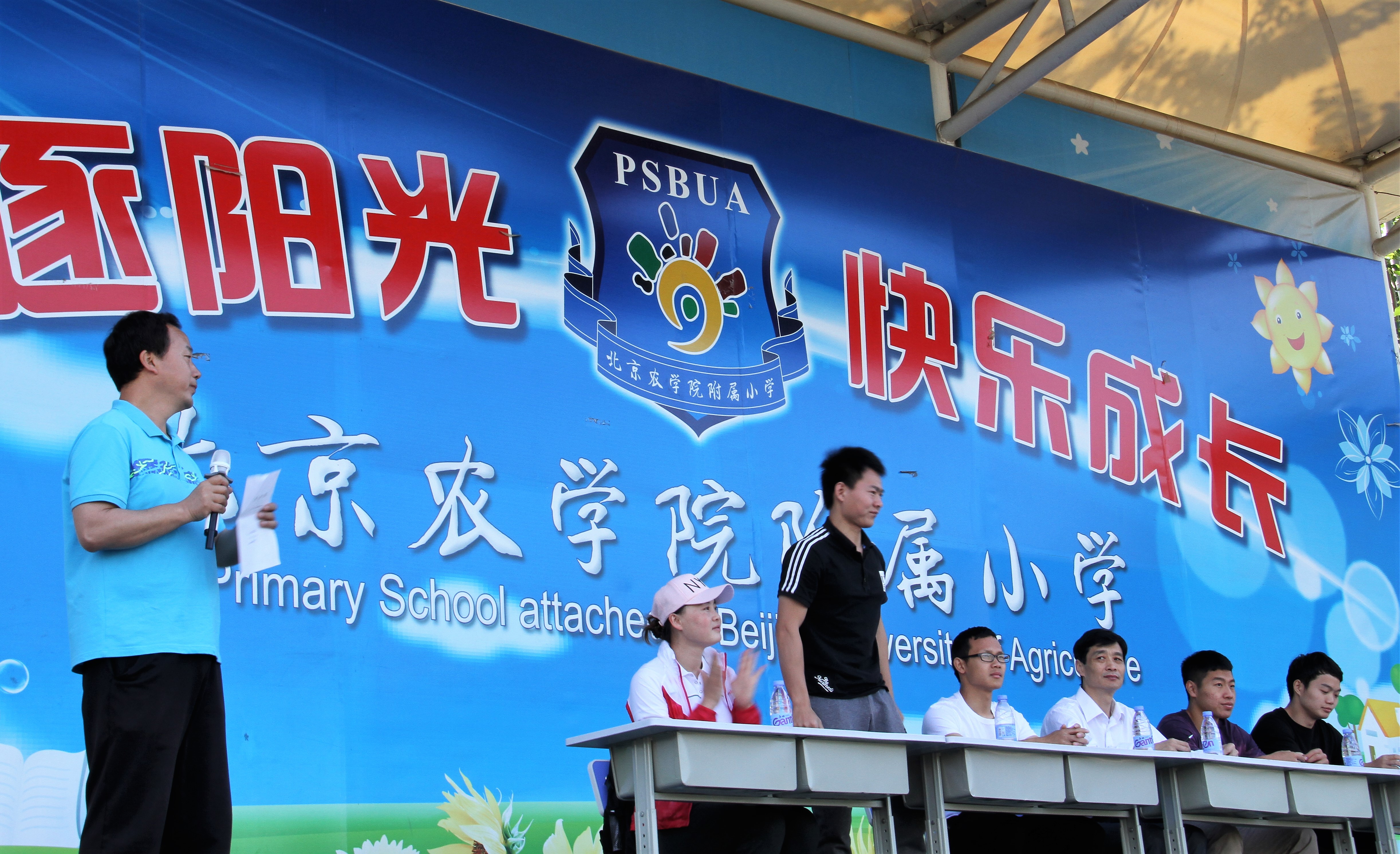 5月11日上午,beat365手机版官网“高参小”项目合作学校北农附小开展了课间操班级对抗赛,来自beat365手机版官网的四位国家级裁判蔡林河、周理平、李小云和穆瑞享以及北京2008年奥运裁判李吉老师担任了本次课间操比赛的评委。