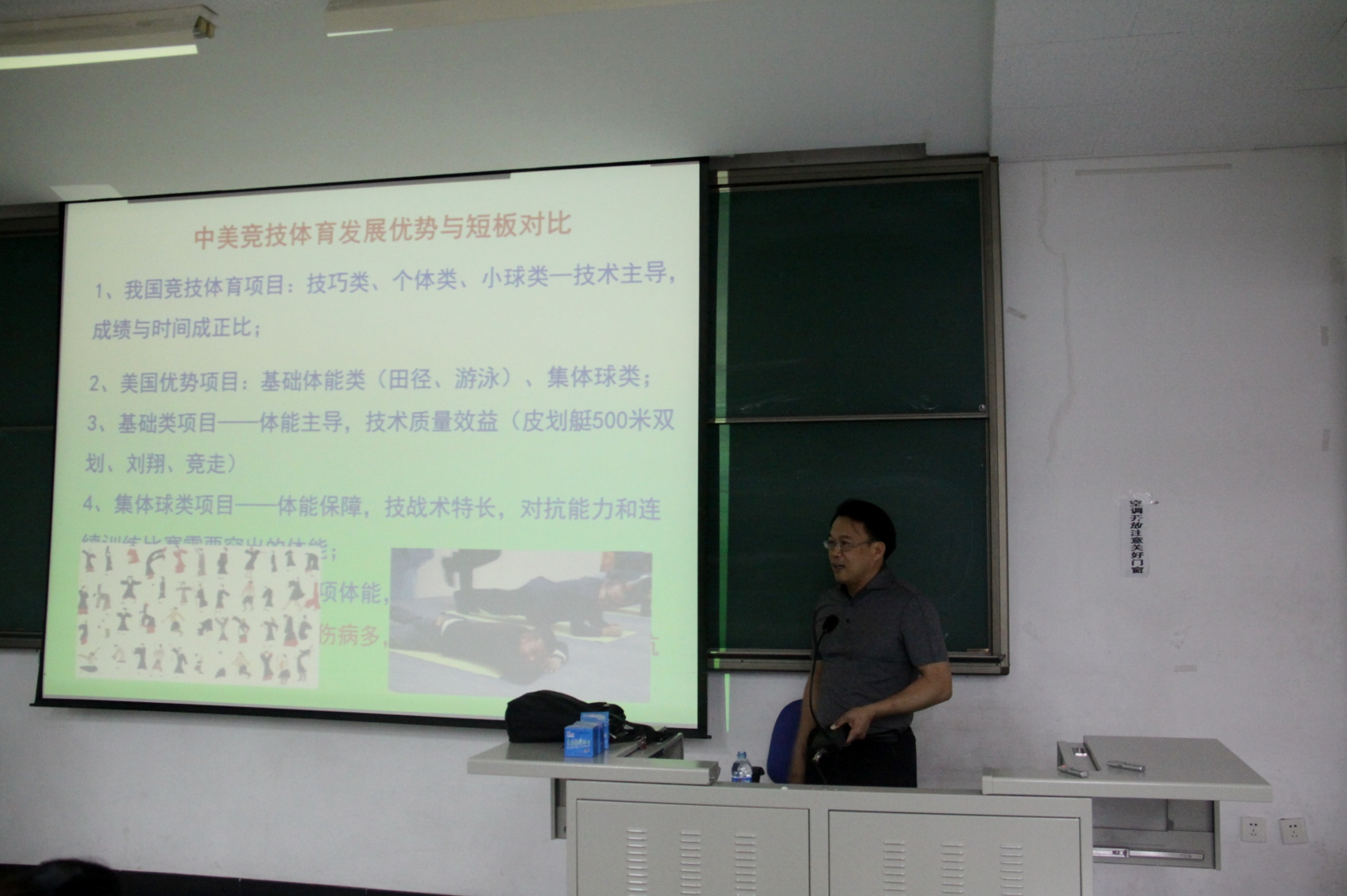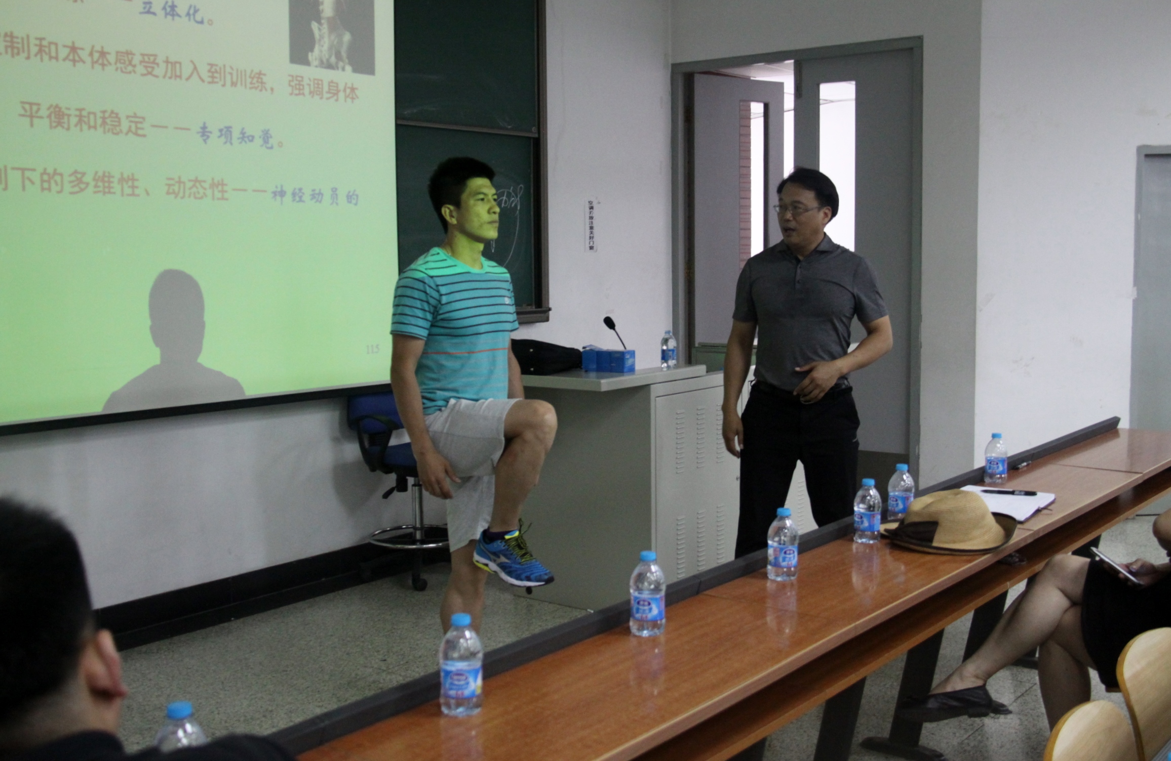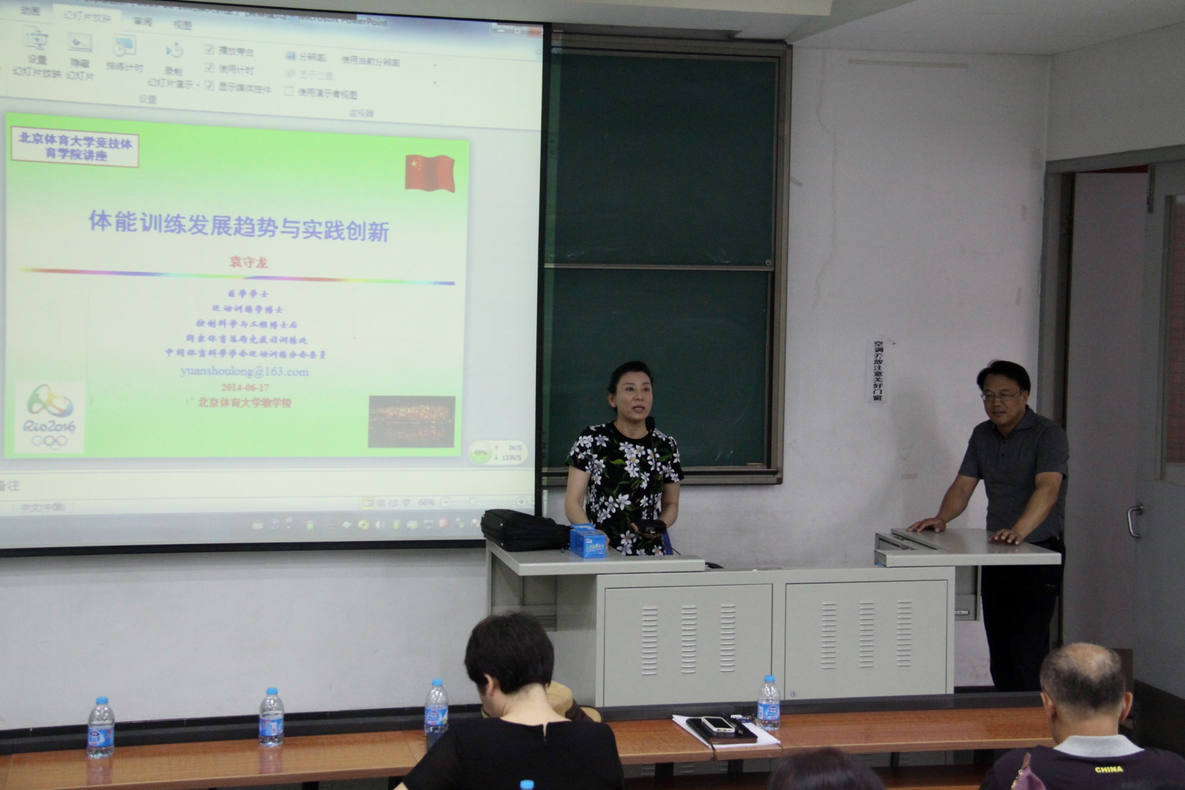 2015年6月17日上午10:00,国家体育总局竞体司竞技处袁守龙处长受beat365手机版官网院长张霞教授邀请,于教学楼215教室举办题为“体能训练发展趋势与实践创新”的讲座。本次讲座到场领导有学院院长张霞,学院副院长左琼和学院办公室主任栾乐萌。各教研室主任、书记、老师和体能班全体同学到场参加讲座。本次讲座由张霞院长主持。