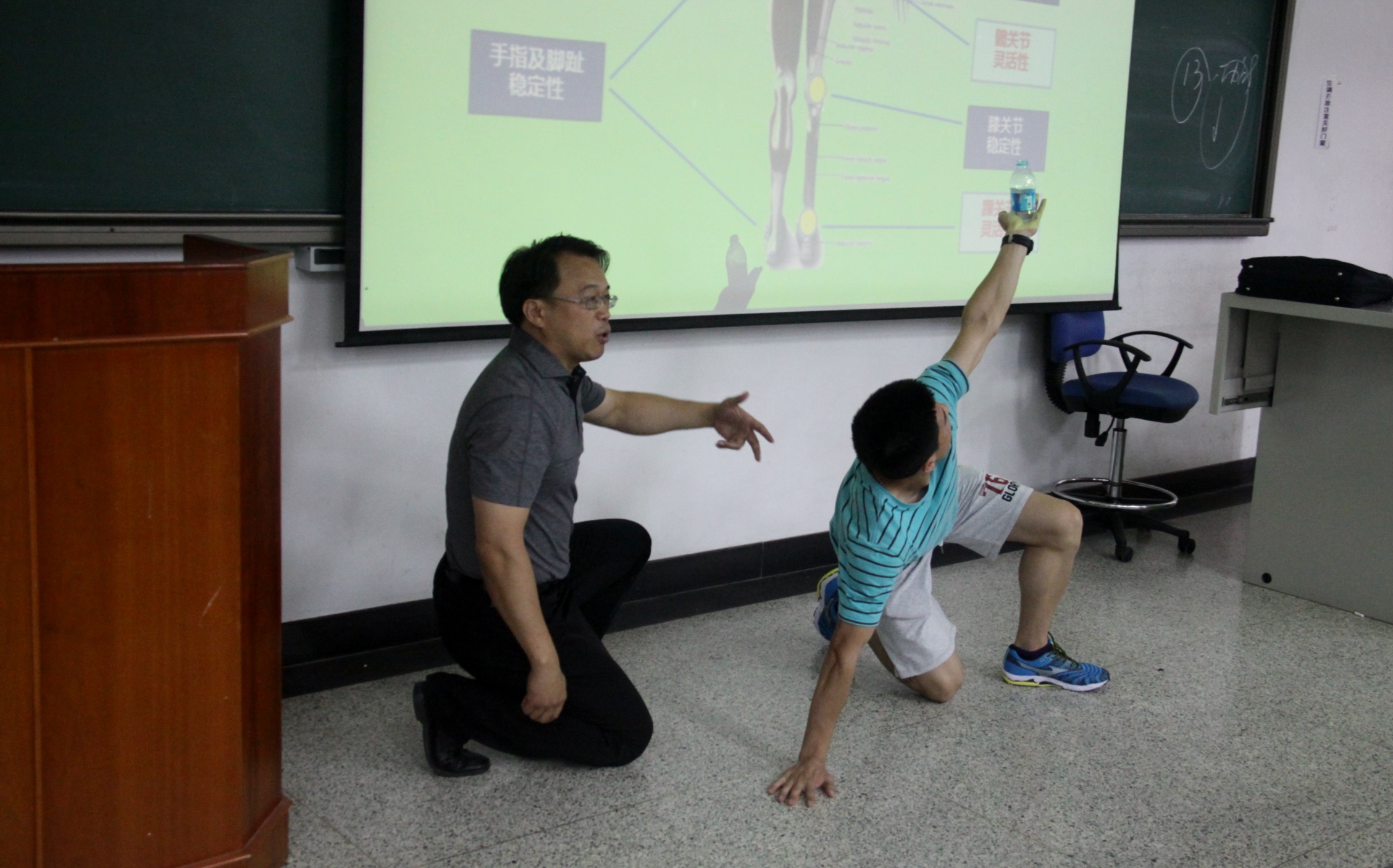 讲座开始前张霞院长对袁守龙老师的到来表示热烈欢迎,并希望各位老师、同学认真聆听讲座。本次讲座主要内容分为四个部分。分别是:体能训练在我国体育中的重要性、我国体能训练发展现状与不足、体能训练实践方法创新以及结论与建议。袁老师着重讲解了我国体能训练的现状与不足,并以国内外运动员的体能状态为例,指出我国运动员在体能训练中出现的问题。在讲座中,袁老师列举出多种科学的体能训练方法,并与现场同学互动实验,充分证明科学的体能训练的重要性,得到老师和同学们的一致认可。接着袁老师讲到美国体能训练政策的导向和现状,并分析其中值得我们借鉴的地方。最后,袁老师对我国体能训练的趋势进行分析并提出建议。