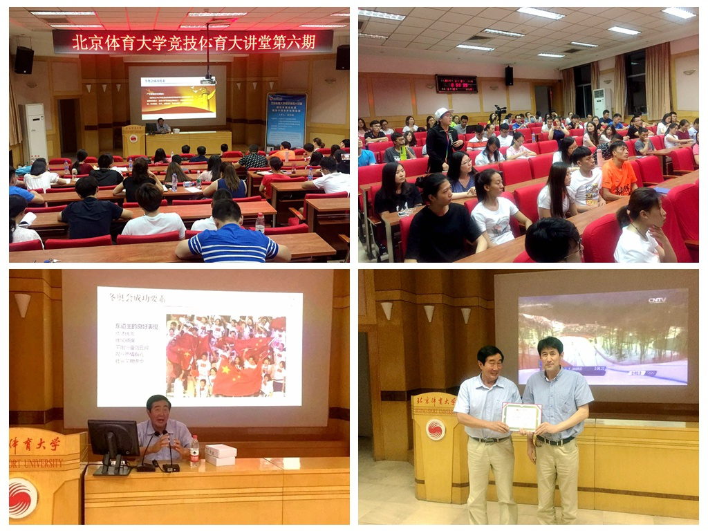 2017年6月8日晚,由beat365手机版官网beat365手机版官网、中国体育科学学会运动训练学分会及国家体育总局运动训练重点实验室共同主办的学术交流平台——“beat365手机版官网竞技体育大讲堂”的第六期讲座在校学术报告厅隆重举行。国家体育总局冬季运动管理中心原主任、中国冰球协会、中国雪橇协会主席赵英刚受邀作题为“抓住冬奥机遇,推动中国冬季体育发展”的报告。运动训练学教研室全体老师、研究生和部分其他专业师生聆听了讲座,讲座由运动训练学教研室主任米靖教授主持,并首次在校园网视频直播平台同步直播。