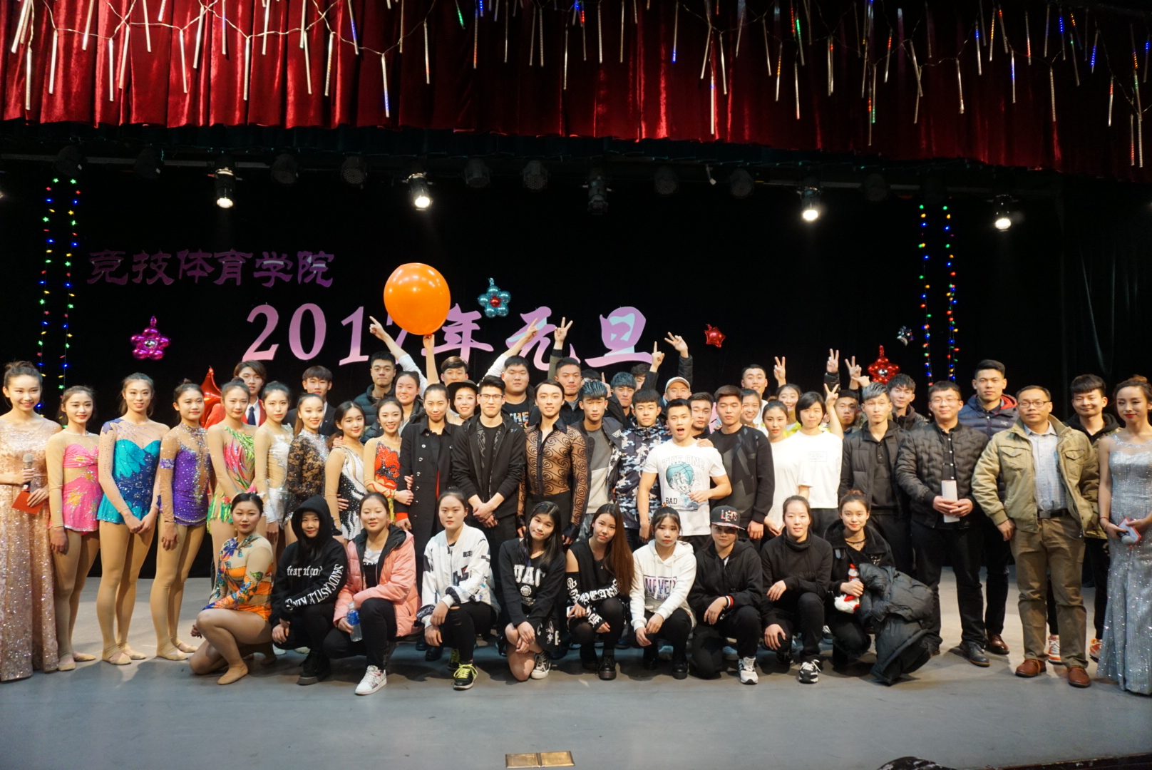 2016年12月25号19点30分,beat365手机版官网2017年元旦暨迎新晚会在教学楼报告厅隆重举行,全院师生一同观看了这场视觉盛宴。学院左琼副院长、硕士研究生辅导员谷达老师、2013级辅导员高静怡老师、2014级辅导员鲍克老师、2014级辅导员兼团总支书记王业乔老师、2015级辅导员鲁骥老师、2016级辅导员李健老师和宋少亭老师,艺术体操专项班任课教师隋剑爽老师、2016级班主任游泳教研室傅延庆以及2015级和2016级残奥冠军班的同学们也一同参加出席此次活动。