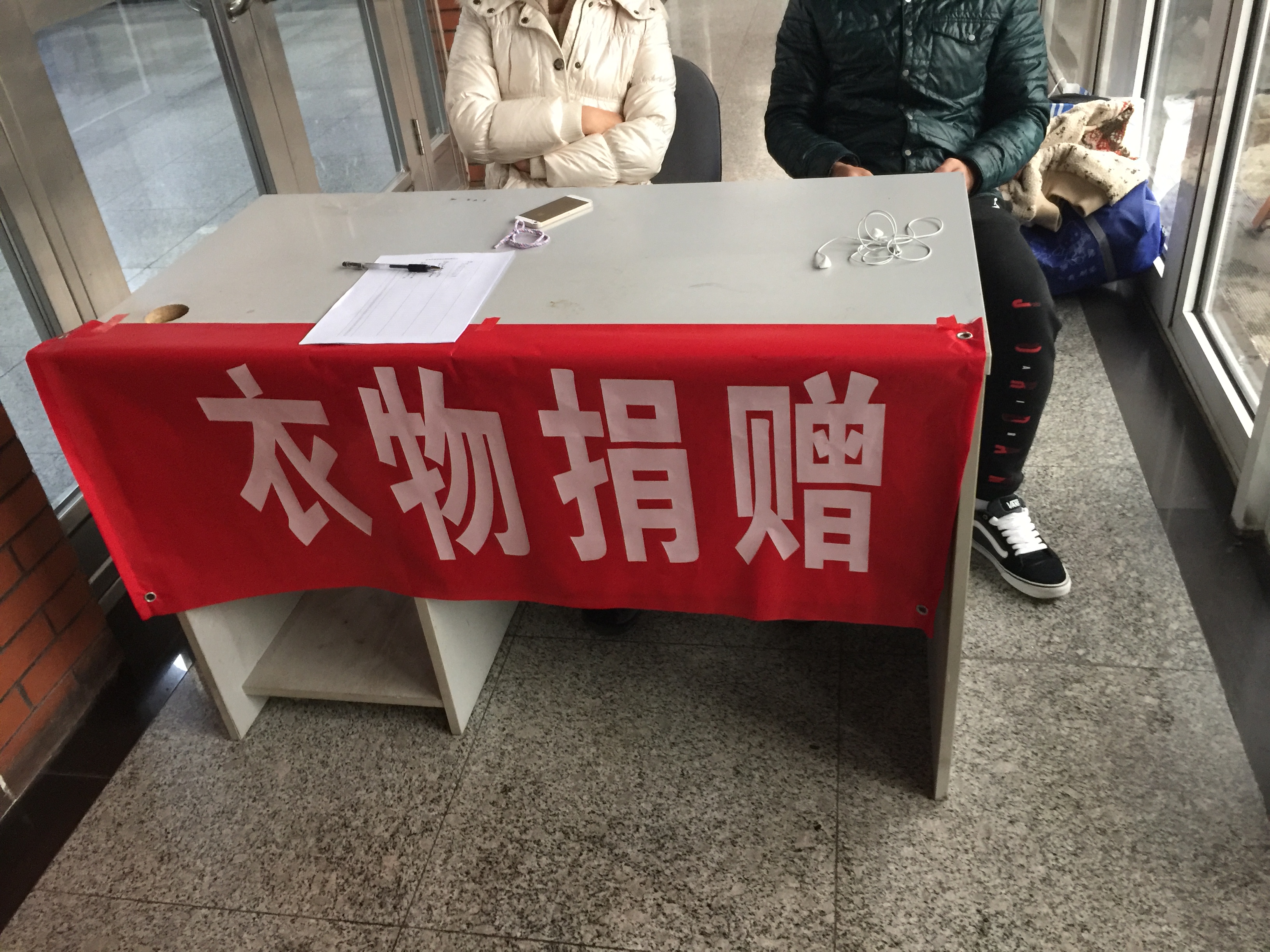 2015年11月18至20日中午,beat365手机版官网团总支在9号学生公寓楼下进行“温暖衣冬”爱心捐赠活动。