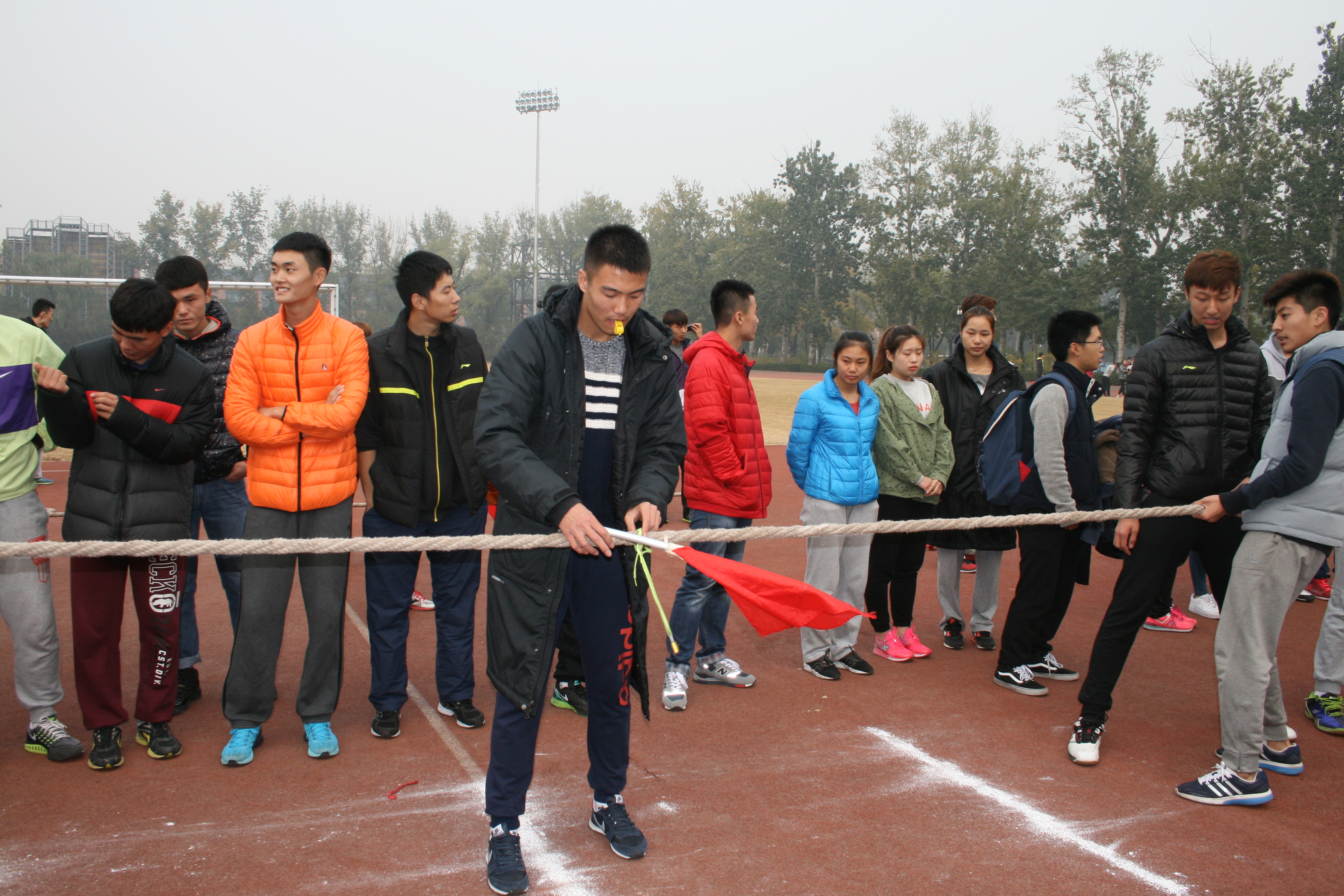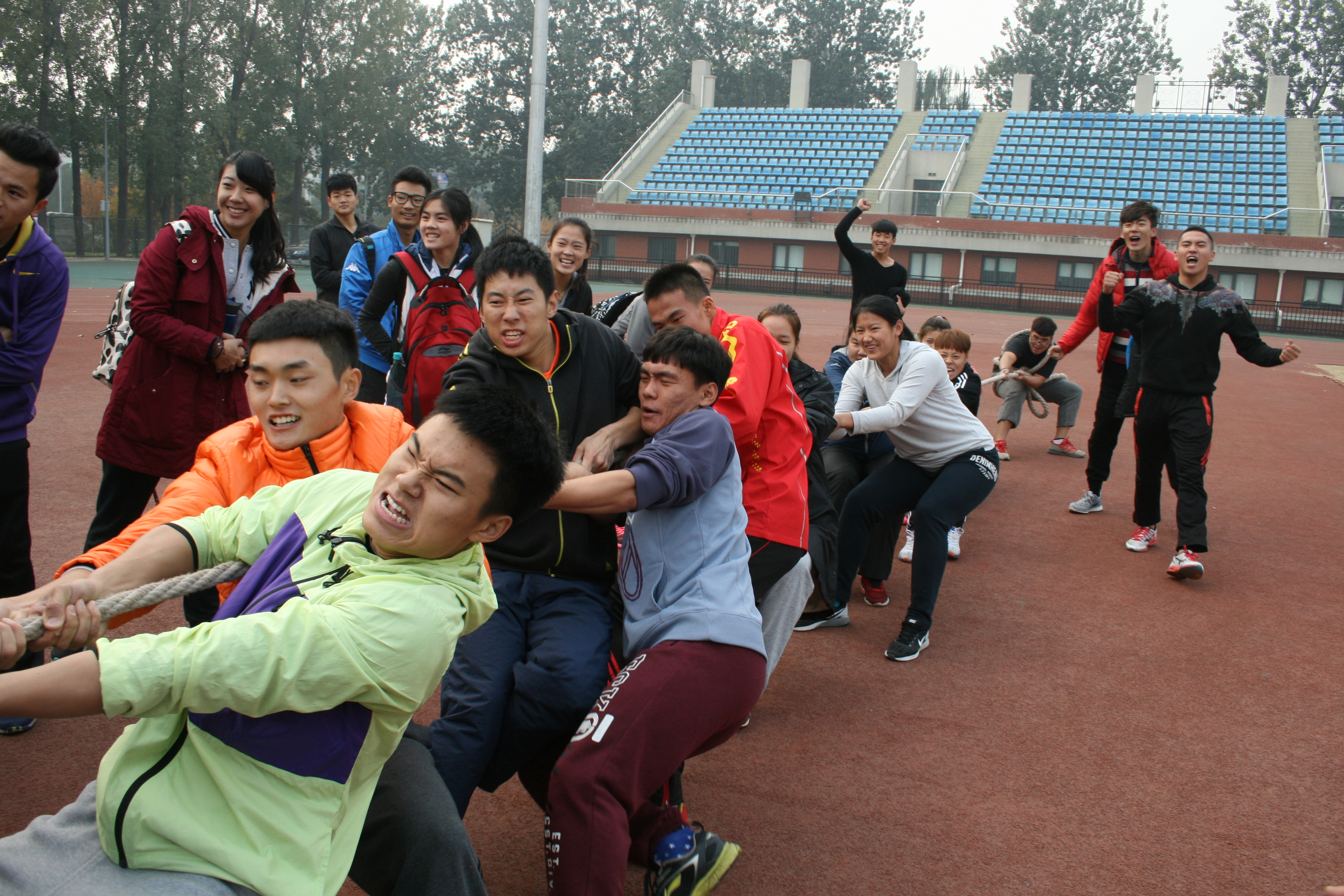 2015年11月4日,由我校beat365手机版官网2015级举办的拔河比赛在英东田径场如期举行。这次拔河比赛是以增强各班级的凝聚力以及班级与班级之间的交流为宗旨,为同学的课余生活增添色彩。此次比赛,各班同学都以积极、热情的态度参与此次活动。