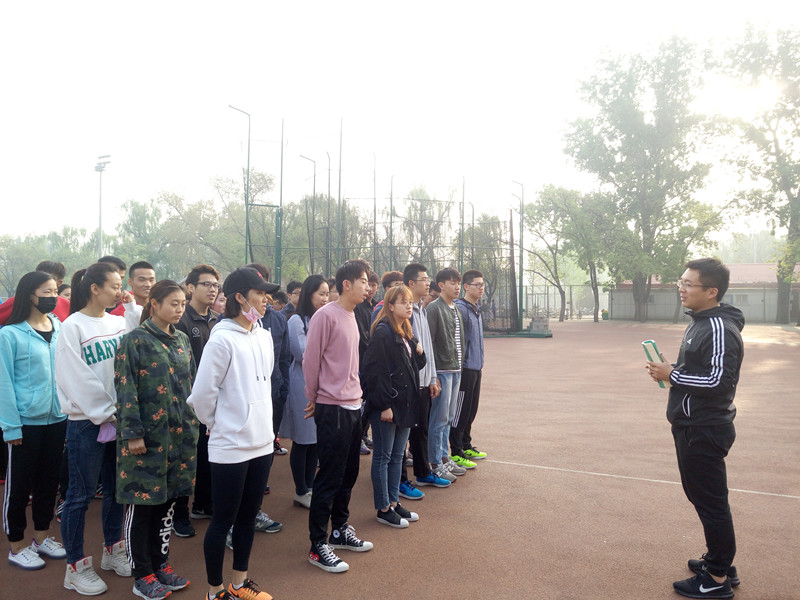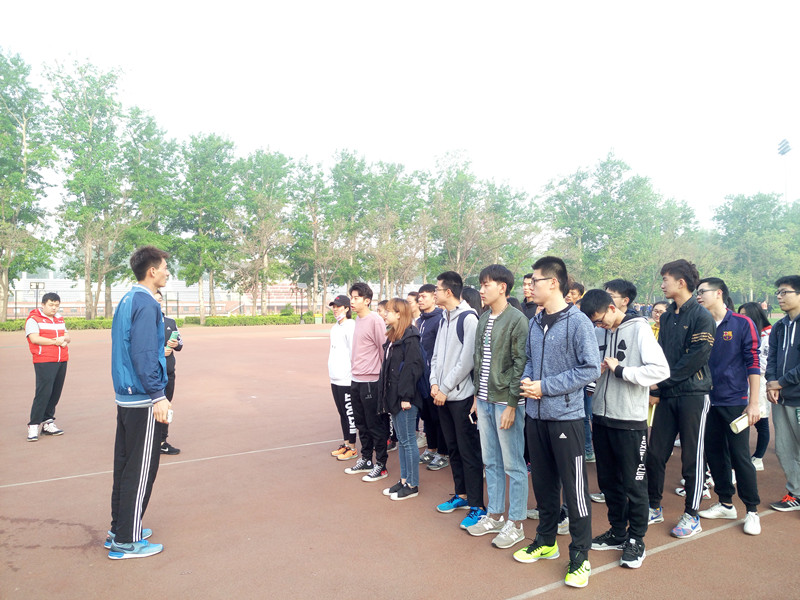 2017年4月17日早晨7:00,beat365手机版官网2016级田径专项班同学与外语系同学在东田径场进行2017年春季运动会赛前交流活动。